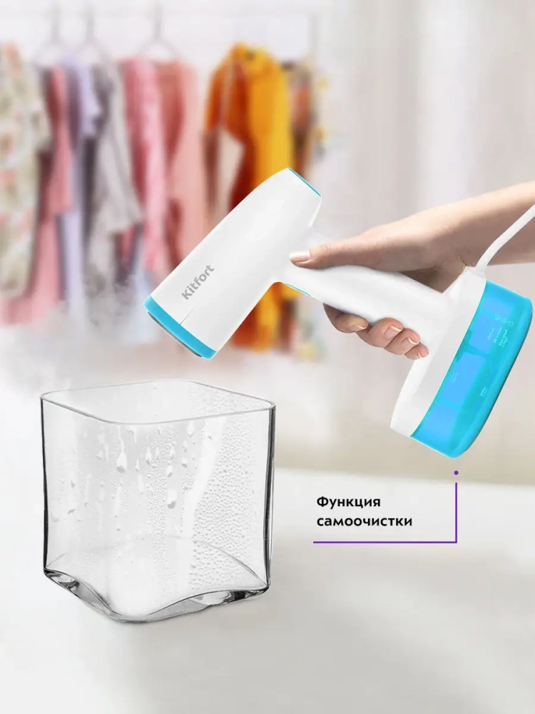 Отпариватель - устройство для разглаживания изделий из текстиля с помощью потока горячего пара. Ручной отпариватель Kitfort КТ-984 обладает такими достоинствами, как: минималистичный дизайн, компактность и легкий вес. Также у данного отпаривателя большая мощность, почти вдвое больше, чем обычно бывает у ручных отпаривателей, что обеспечивает мощную подачу струи пара. Ручной отпариватель позволяет прогладить вещи, которые обычно не гладят, например, пышные платья со сложной структурой, шубы и дубленки, так как он обрабатывает вещи мощной струей горячего пара. Также с его помощью можно готовить к сезону вещи, у которых при хранении появился затхлый запах - отпариватель эту проблему решает без всякой стирки. Ко всему прочему горячий пар устраняет неприятные запахи и освежает ткани, поэтому он отлично поможет в ситуации, когда вы один раз надевали вещь и хотите сделать это еще раз, не стирая.