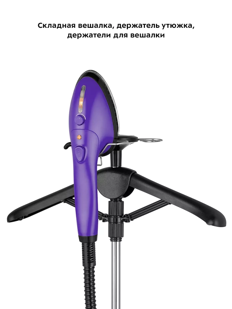 КТ-9123 оснащен телескопической стойкой, складной вешалкой для одежды, держателем утюжка с крюками для вешалок. Фиксатор вешалки позволит вам закрепить вешалку на телескопической стойке на необходимой высоте. Ширину плечиков можно регулировать.