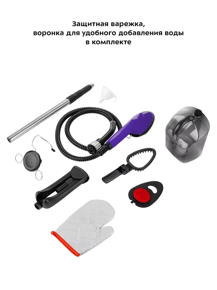 В комплекте есть защитная варежка, ворсовая щетка-зажим и щетка из микрофибры. Все это облегчает и ускоряет процесс глажки.