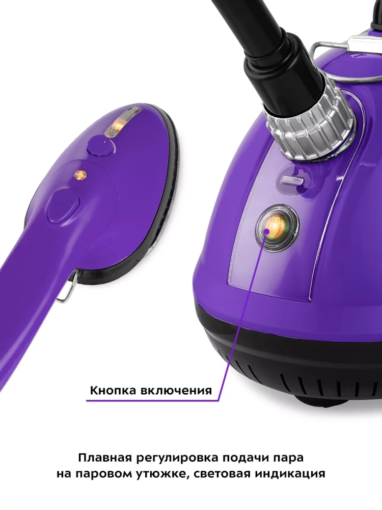 Отпариватель КТ-9123 плавную регулировку подачи пара для различных типов тканей. Кнопка подачи пара и регулятор находятся на утюжке, что очень удобно.