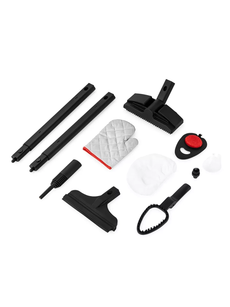 Утюжок для сухой глажки позволить вам прогладить ткани как обычным утюгом, а паровой пистолет поможет очистить полы и стены из керамической плитки и гранита, водостойкий деревянный пол, пластиковый пол, кафель и швы между плитками, а также труднодоступные места, стыки арматуры, жалюзи и радиаторы отопления. Кроме того, паровой пистолет используется для очистки тканевых вещей, избавления от известковых и жировых отложений.