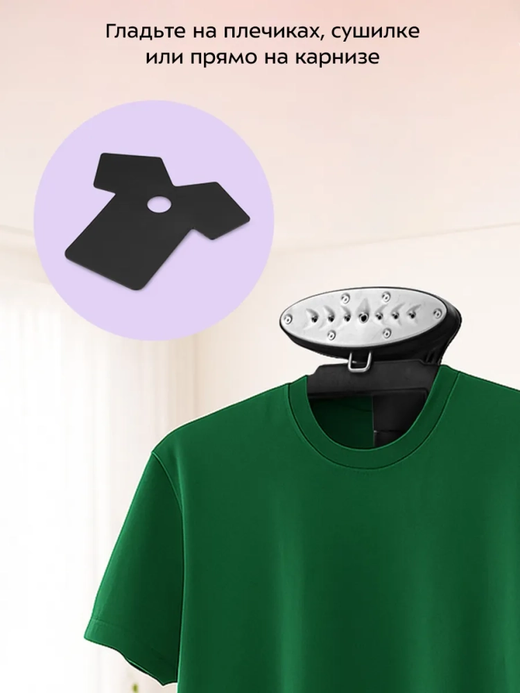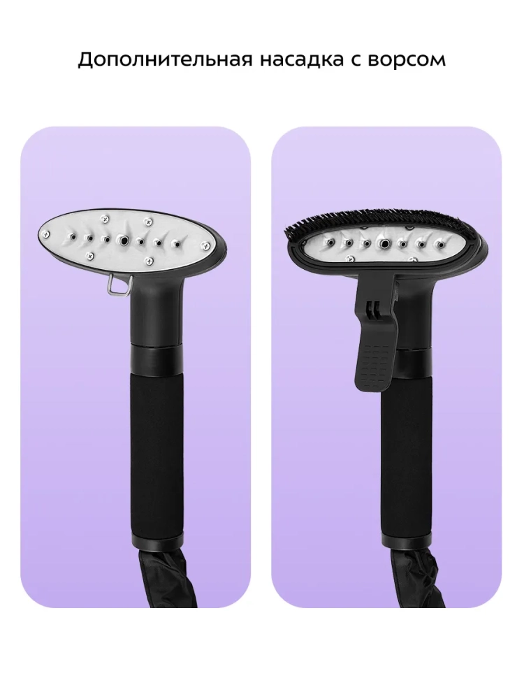 На вешалку отпаривателя можно повесить рубашки и другую одежду. Также одежду можно подвесить на крючок, чтобы не перевешивать ее с вешалок, на которых она хранится в шкафу. В комплекте к отпаривателю идет ворсовая щетка-зажим, которая поможет счистить волосы и шерсть домашних животных с одежды и обивки мебели, а также поможет создать стрелки на брюках.