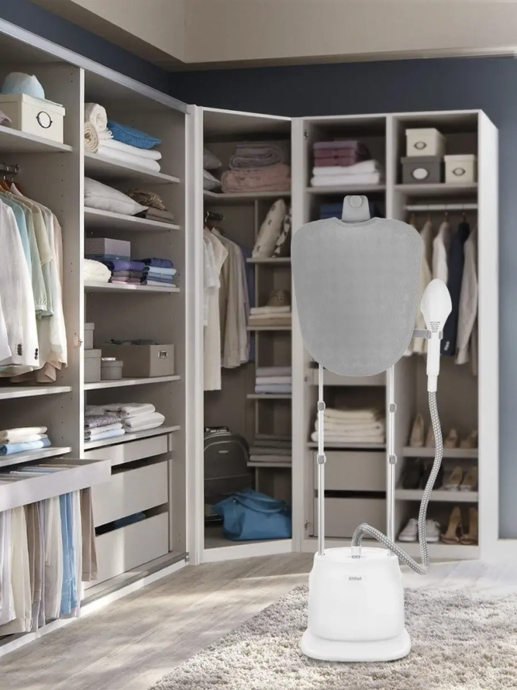 Вертикальный отпариватель Kitfort КТ-975 - серьезный конкурент паровых утюгов: он позволяет чрезвычайно быстро прогладить любые вещи и изделия из текстиля. Это тщательный уход за вещами, не отнимающий много времени. Кроме глажки и отпаривания отпариватель обрабатывает вещи мощной струей горячего пара, проводя таким образом чистку и дезинфекцию. Помимо отпаривания одежды вы можете отпарить занавески и портьеры (для этого их не обязательно снимать), обивку мягкой мебели, матрасы, кровати. При этом вы не только разгладите складки, но и освежите вещи, а также продезинфицируете их, так как горячий пар хорошо убивает пылевых клещей и другие микроорганизмы.КТ-975 оснащен гладильной доской. Она облегчает и ускоряет процесс глажки, ее можно оставить в вертикальном положении, но также можно разложить в горизонтальное. В комплекте к отпаривателю идут ворсовая щетка и защитная варежка.