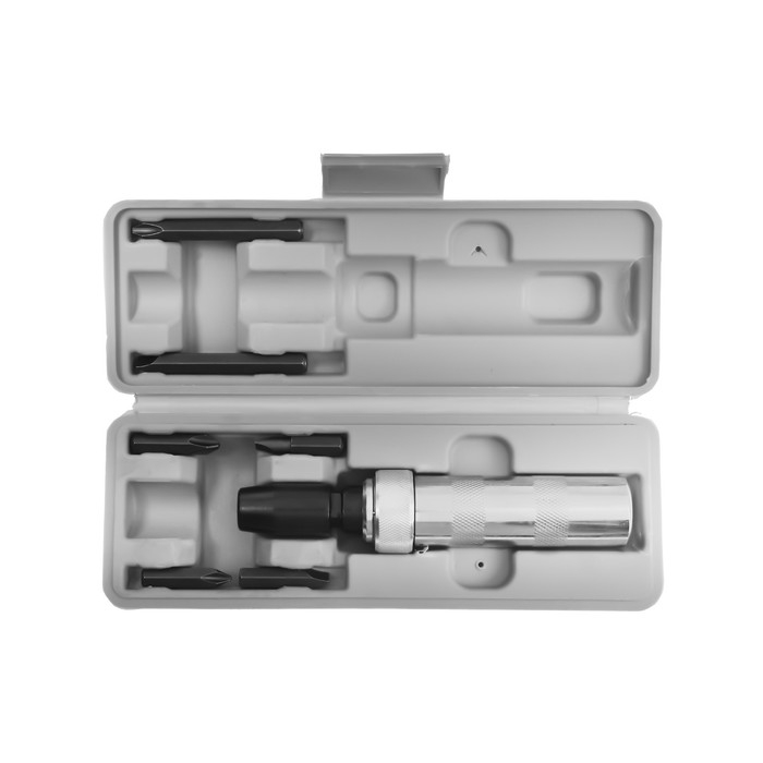 Отвертка ударно-поворотная ТУНДРА 1/2", с битами 6 шт., металлическая рукоятка, кейс