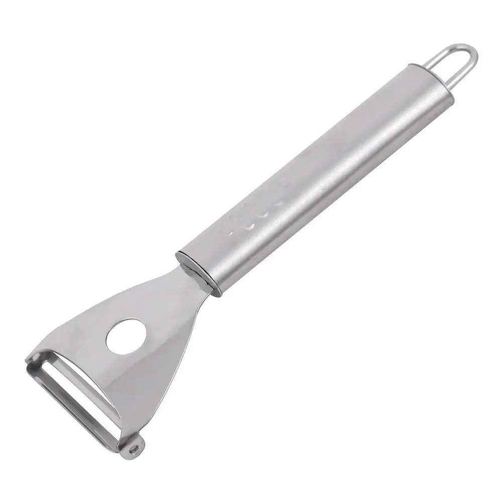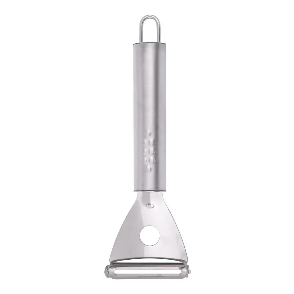 Овощечистка — приспособление, с помощью которого так просто очистить кожицу с овощей, фруктов, корнеплодов. Инструмент имеет удобную рабочую часть и ручку, изготовлено из нержавеющей стали. Для удобства хранения на крючке на ручке есть специальная петля. После использования рекомендуется промыть щеткой с моющими средствами.