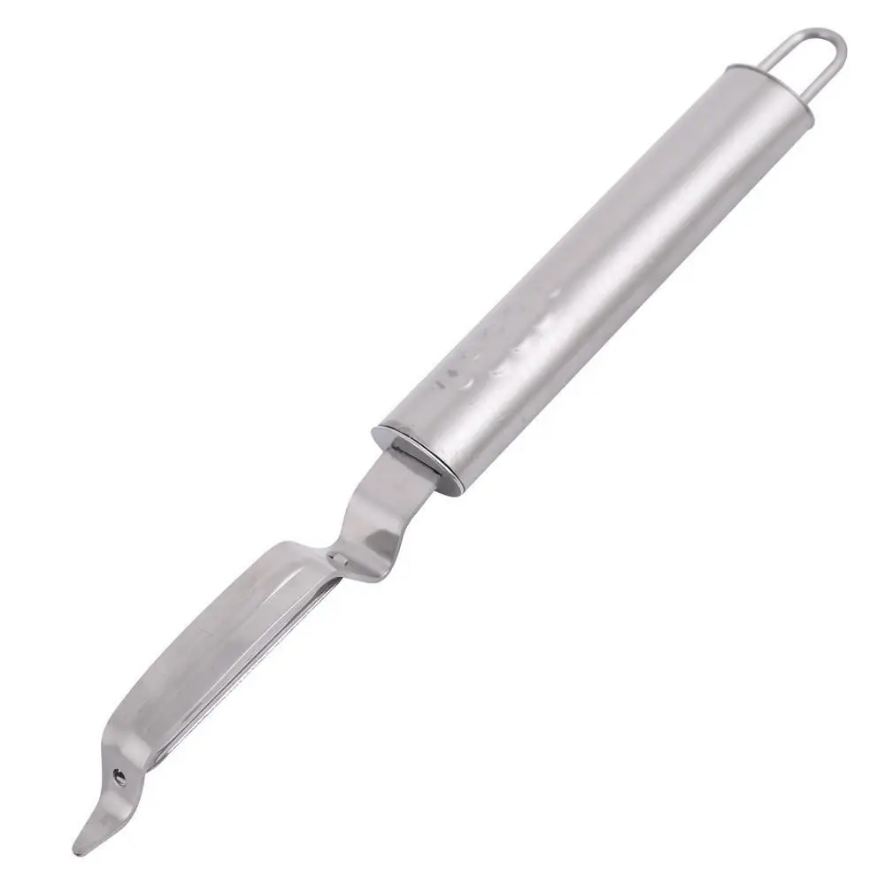 Удобная овощечистка «Лидер» с поворотным лезвием позволяет аккуратно удалять кожуру с овощей, фруктов, корнеплодов. Конструкция лезвия минимизирует отходы во время чистки, позволяет регулировать толщину среза. Заостренная часть предназначена для вырезания глазков и трещин. Овощечистку можно использовать для нарезки сыра, авокадо и шоколадной стружки. Изготовлена из коррозионностойкой (нержавеющей) стали. После применения рекомендуется мыть мягкой щеткой с использованием жидких моющих средств.