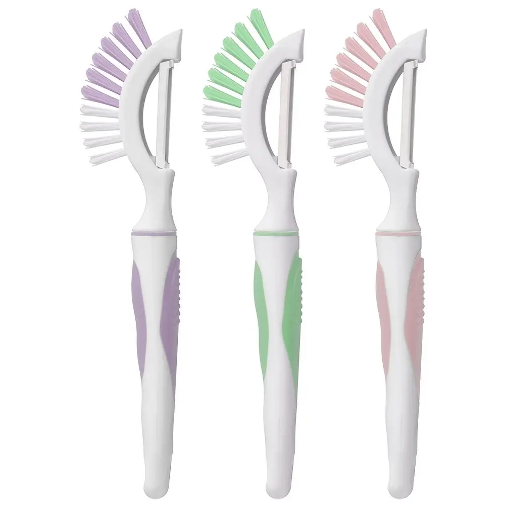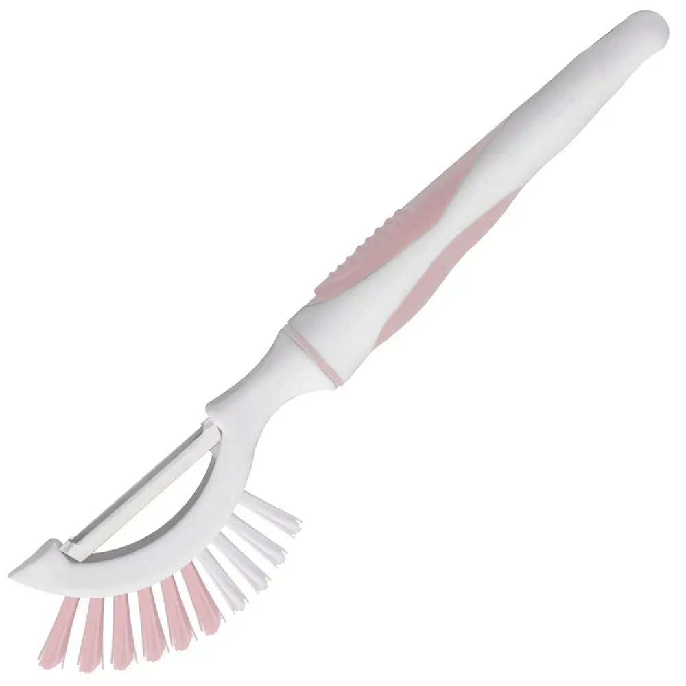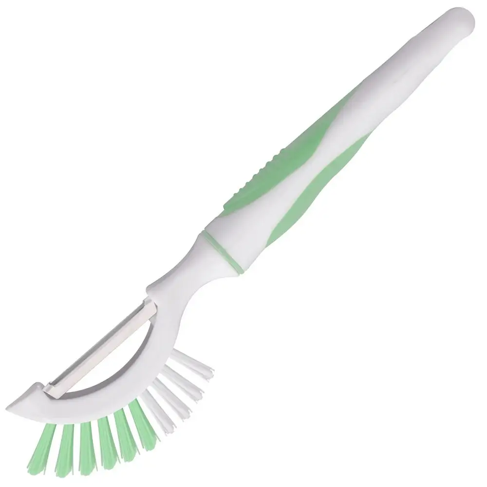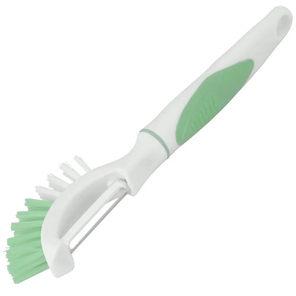 Овощечистка — кухонный инструмент для очистки овощей, фруктов, корнеплодов. Вертикальная овощечистка идеально подойдет для овощей продолговатой формы: моркови, огурцов, кабачков и т.п. Лезвие подходит для кожуры любой толщины, безопасно снимает ее ровным слоем, минимизируя пищевые отходы. Благодаря имеющейся щеточке, вы сможете удалить загрязнения с овощей и фруктов перед чисткой. Удобная ручка изделия обеспечивает дополнительный комфорт во время использования. Для удобства в хранении в ручке предусмотрено отверстие.