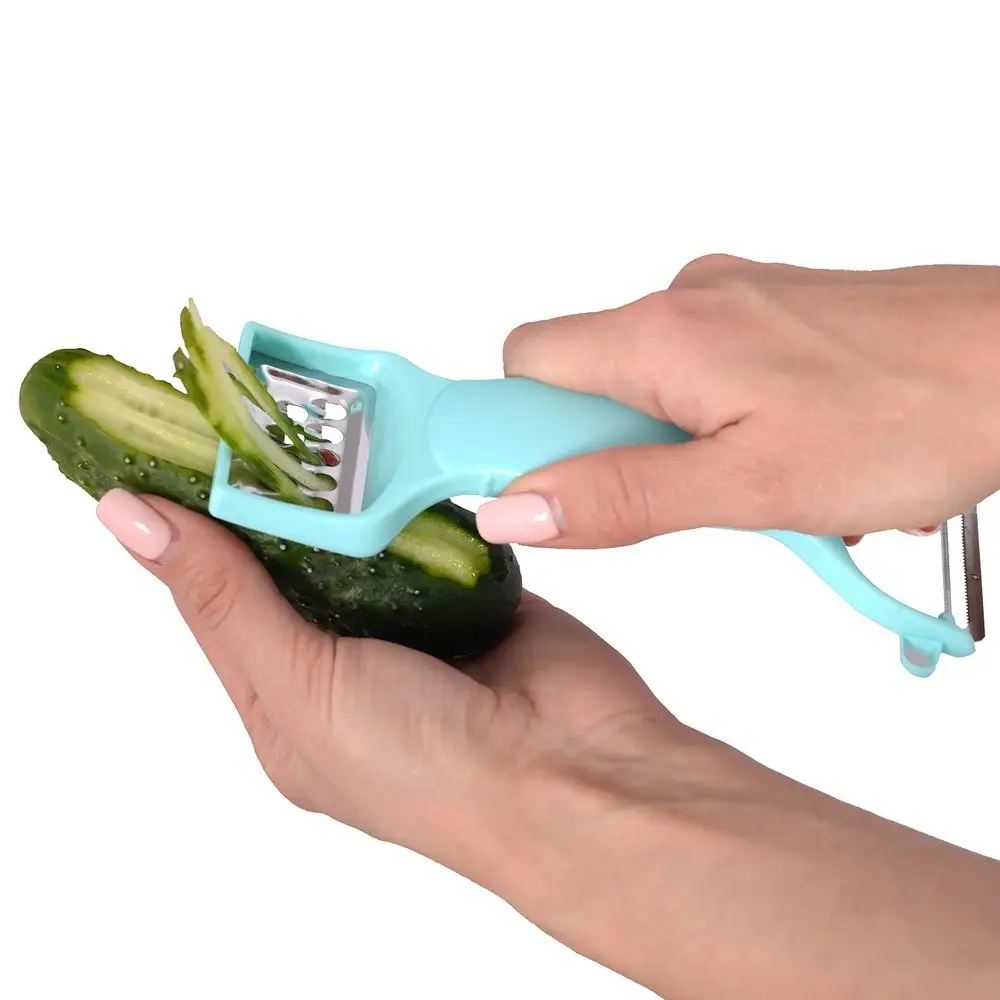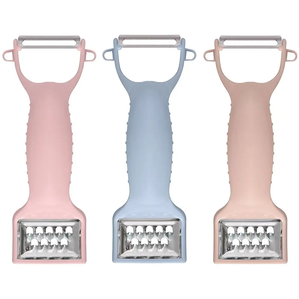 Оригинальная овощечистка-терка станет отличным помощником для любой хозяйки. Предназначена для очистки овощей и удаления глазков. Специальная конструкция ножа задает необходимую глубину очищаемого слоя и минимизирует отходы. Небольшую терку можно использовать для измельчения чеснока, имбиря, сыра, шоколада и т. п.