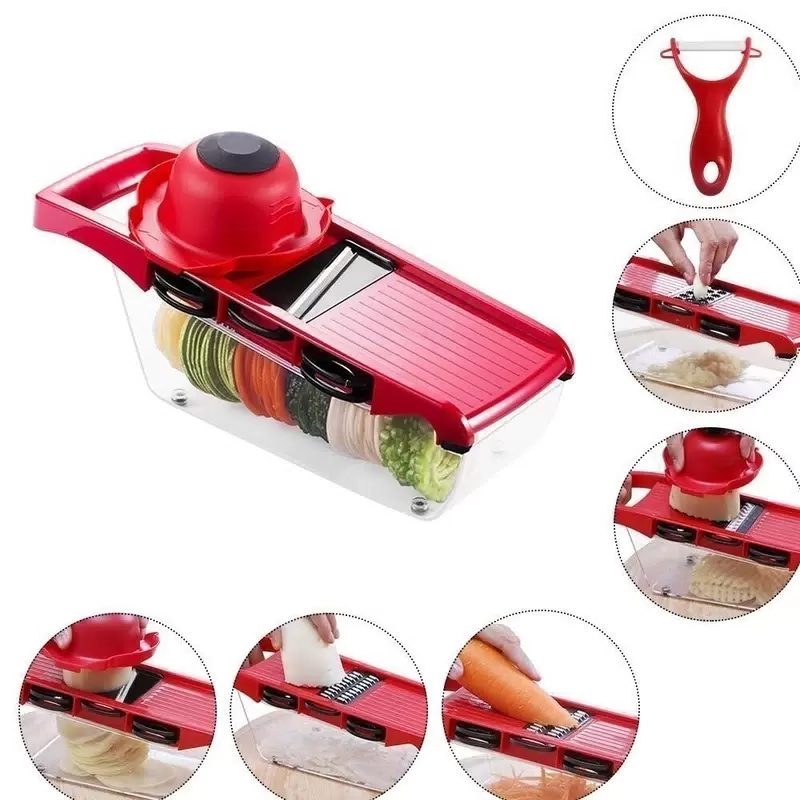 Многофункциональная терка с 6 насадками, 1 прозрачная коробка для овощей, 1 ручной предохранитель. Легко хранить, использовать экологически чистый материал, лезвие из нержавеющей стали, острое и простое в использовании. Она не занимает места.