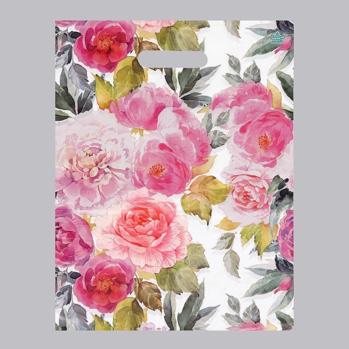 Пакет "Акварельные пионы", полиэтиленовый с вырубной ручкой, 40 х 31 см, 30 мкм, набор 5 шт
