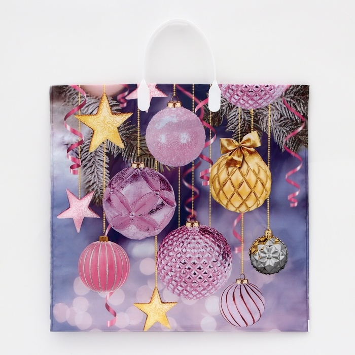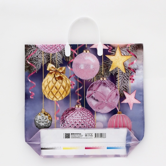 Новогодний полиэтиленовый пакет с пластиковыми ручками — это стильное и практичное решение для упаковки праздничных подарков.