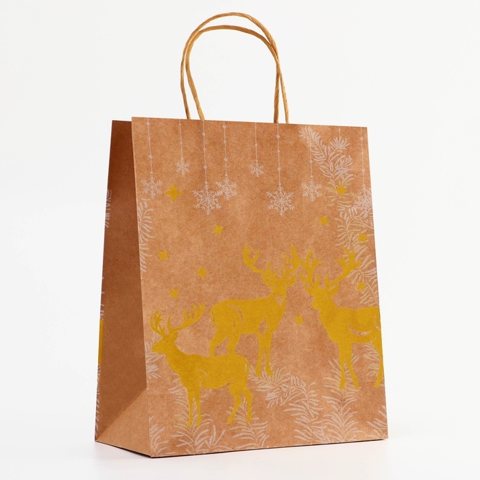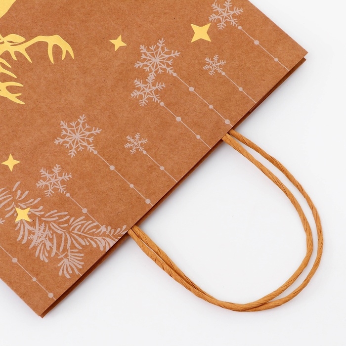 Пакет крафт новогодний 33 х 25 х 12 см - это стильное и функциональное решение для упаковки и транспортировки подарков в преддверии зимних праздников.