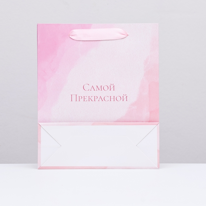 Пакет подарочный с лентой, упаковка, «Самой прекрасной», 13 х 23 х 7 см