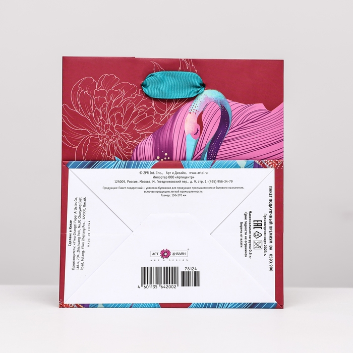 Удобные ручки позволяют легко переносить пакет, обеспечивая комфорт и удобство как во время покупок, так и при передвижении с подарками или другими предметами.