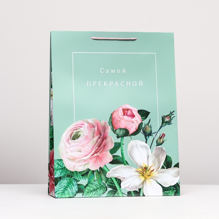 Пакет подарочный с лентой, упаковка, «Самой прекрасной», 13 х 23 х 7 см