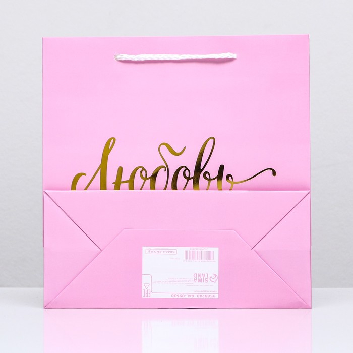 Пакет подарочный крафт "Любовь", розовый, 22,5 х 23 х 10 см, набор 12 шт.