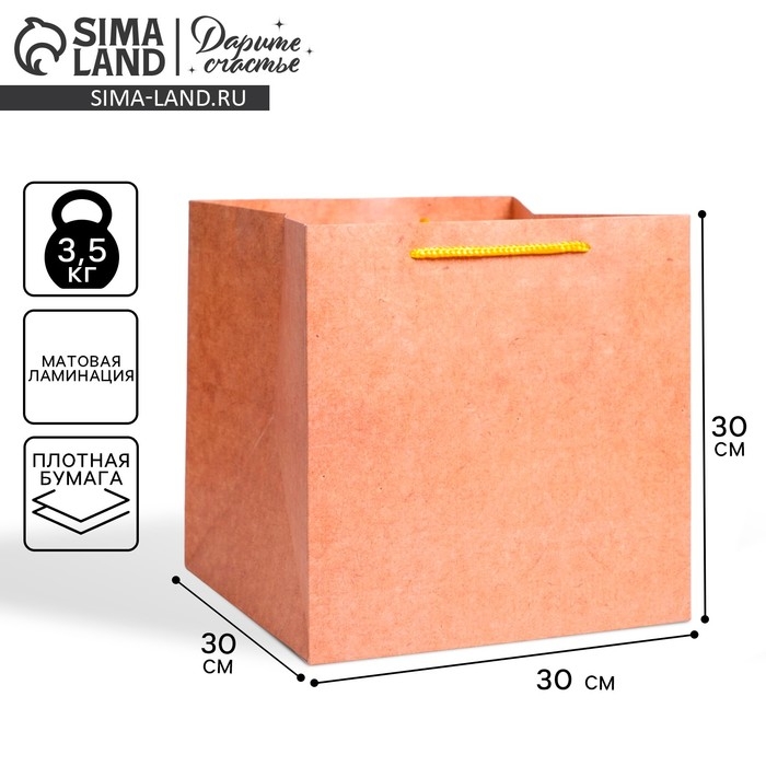Пакет подарочный квадратный, упаковка, «Крафт», 30 х 30 х 30 см
