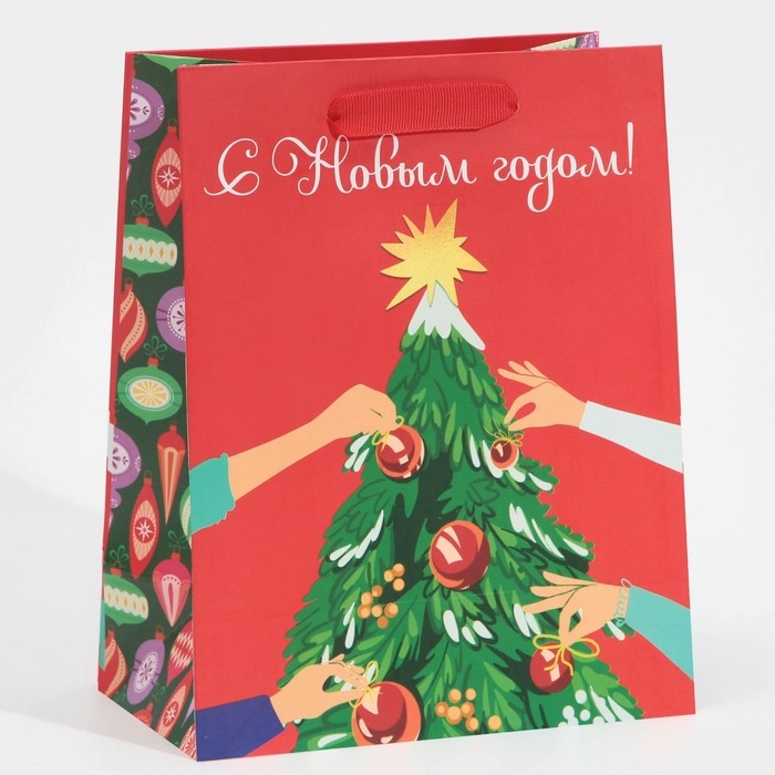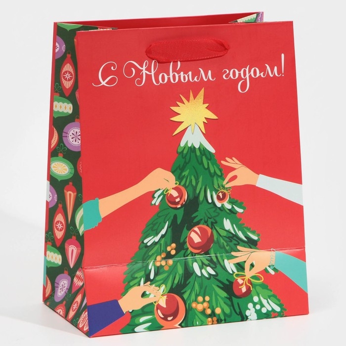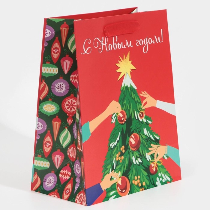 Пакет подарочный новогодний ламинированный «Шарики», MS 18 х 23 х 10 см, Новый год