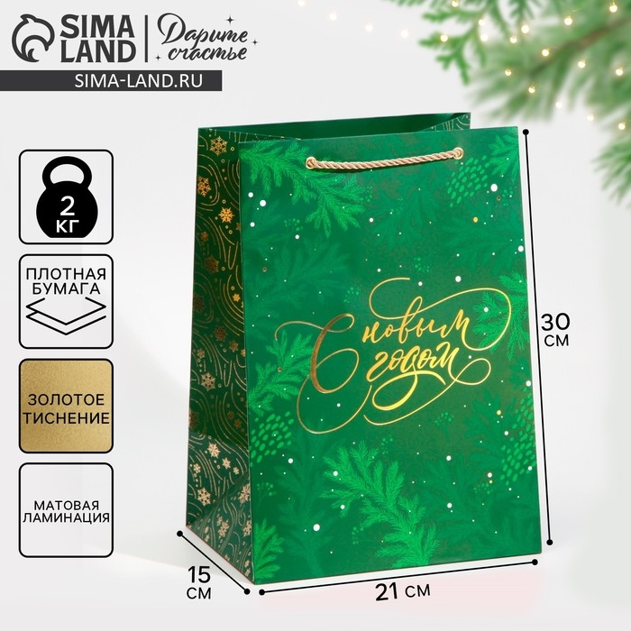Пакет подарочный новогодний ламинированный «Яшма», 21 х 30 х 15 см, Новый год