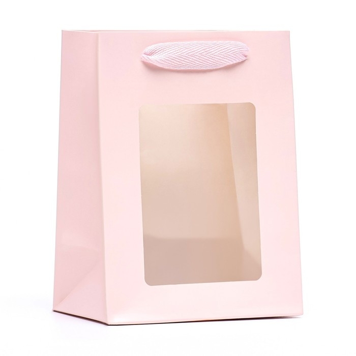 Пакет подарочный, с окном, 20 х 15 х 10 см, розовый 1шт.