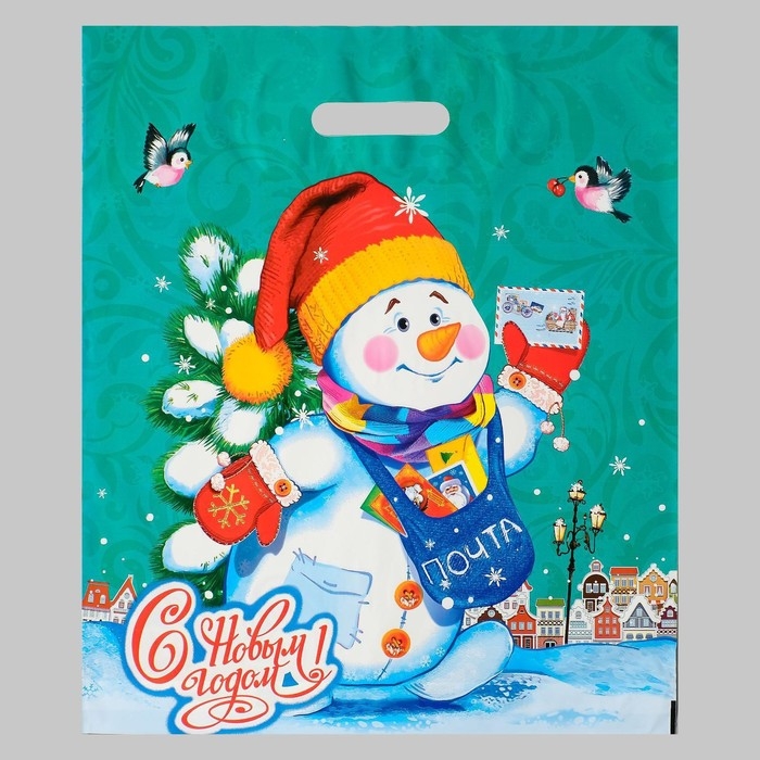 Пакет "Снеговичок", полиэтиленовый с вырубной ручкой, 40х47 см, 45 мкм набор 5 штук