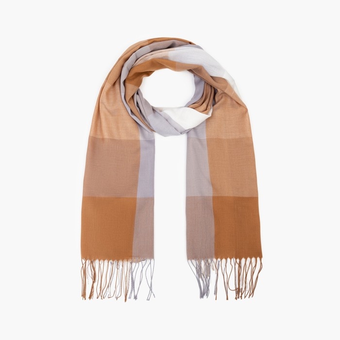Палантин текстильный, цвет бежевый/серый, размер 68х175