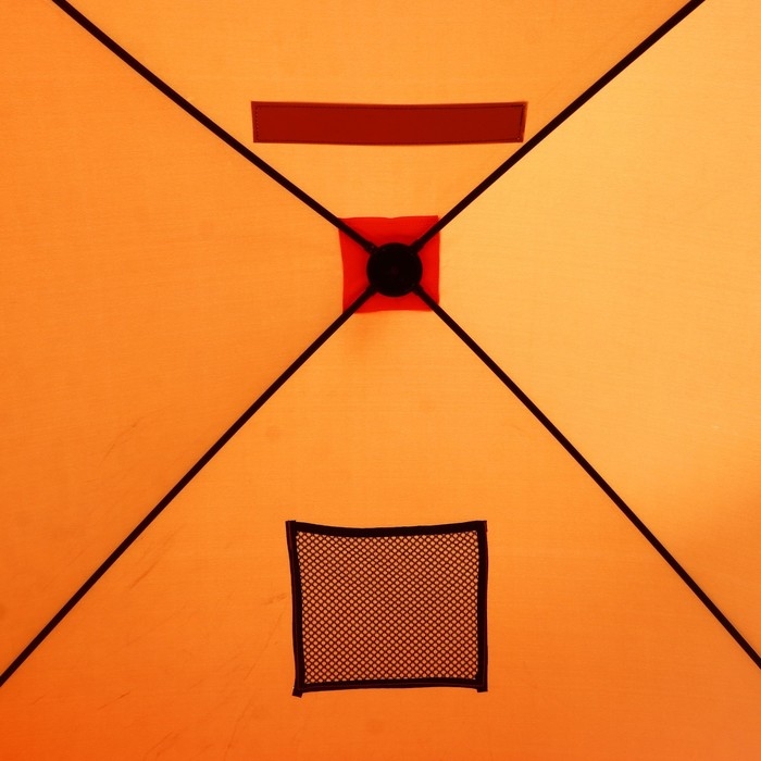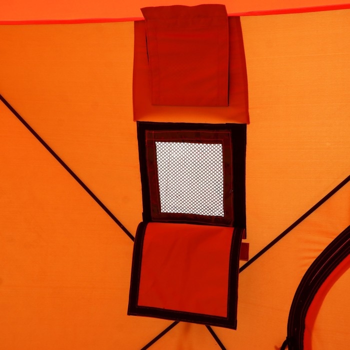 Палатка "Куб" оснащена вентиляционным окном с ветровыми клапанами обеспечат комфортный микроклимат внутри палатки.