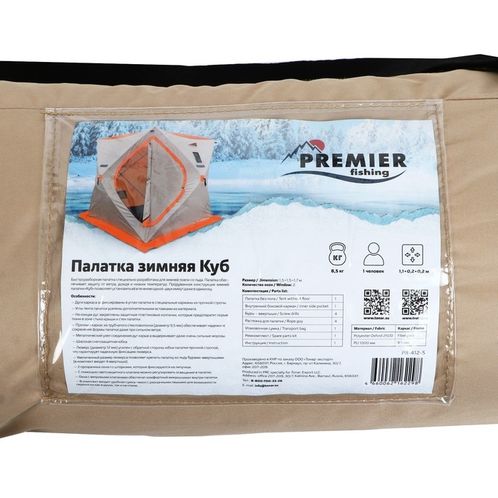 Зимняя палатка "Куб" имеет удобную форму для размещения в ней одного, двух рыбаков. Высота палатки 2.0 м, что позволяет комфортно входить в неё. Чехол для транспортировки оснащен двумя лямками и ручкой. Палатку можно переносить как в руках, так и надев её как рюкзак на спину.