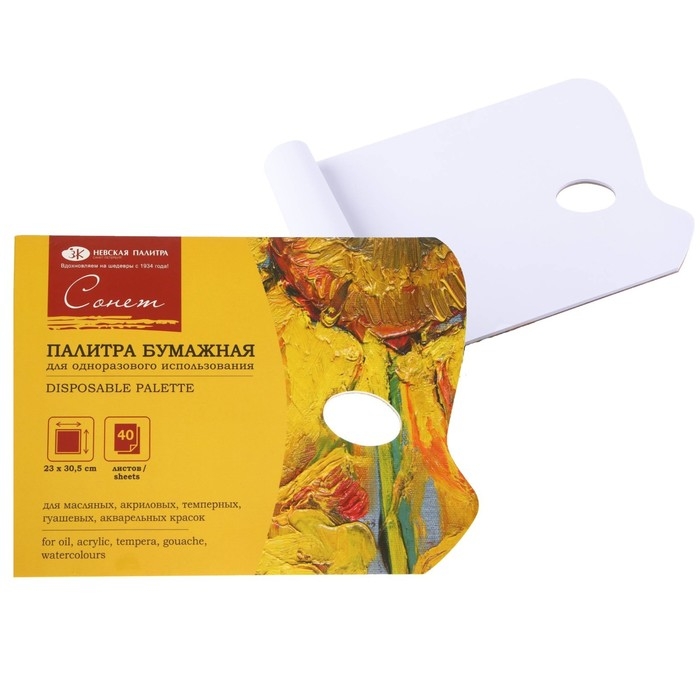 Палитра бумажная 23 х 30.5 см, 40 листов ЗХК "Сонет"