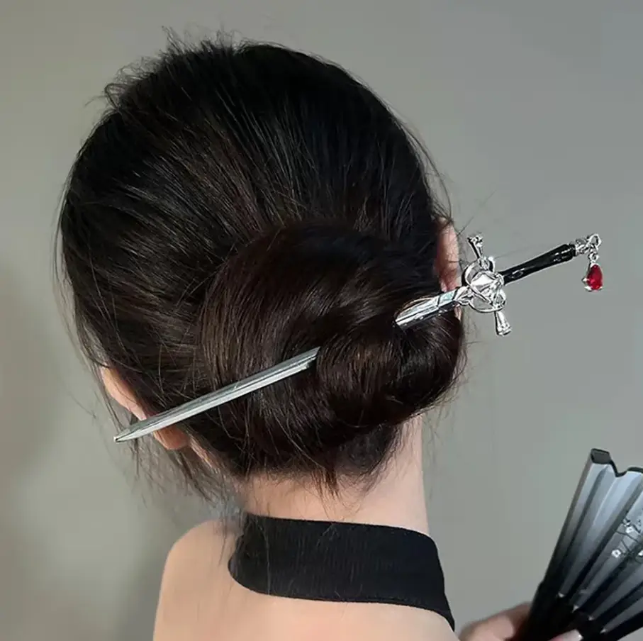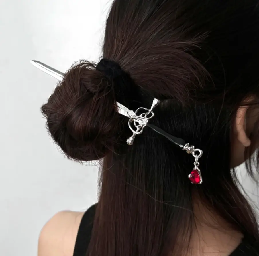 Палочка для волос шпилька Меч серебристая с кристаллом