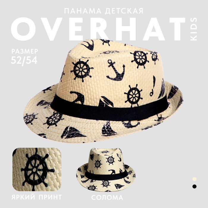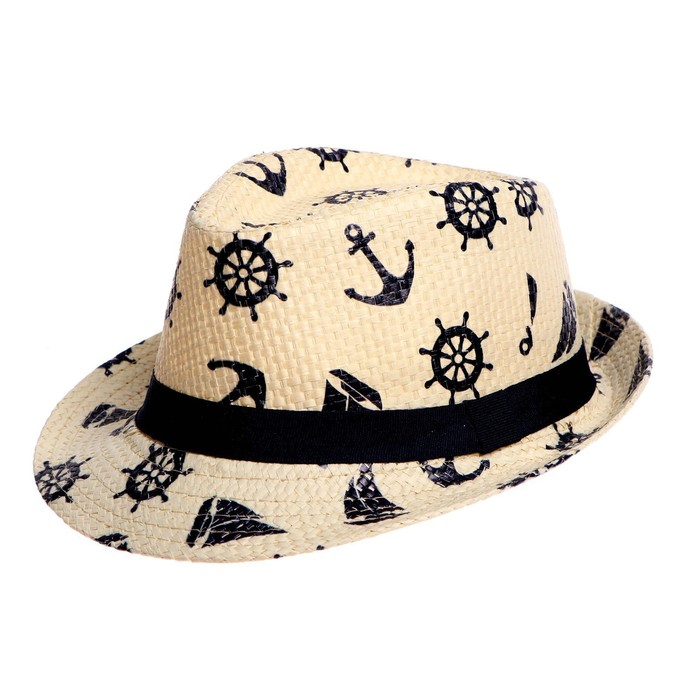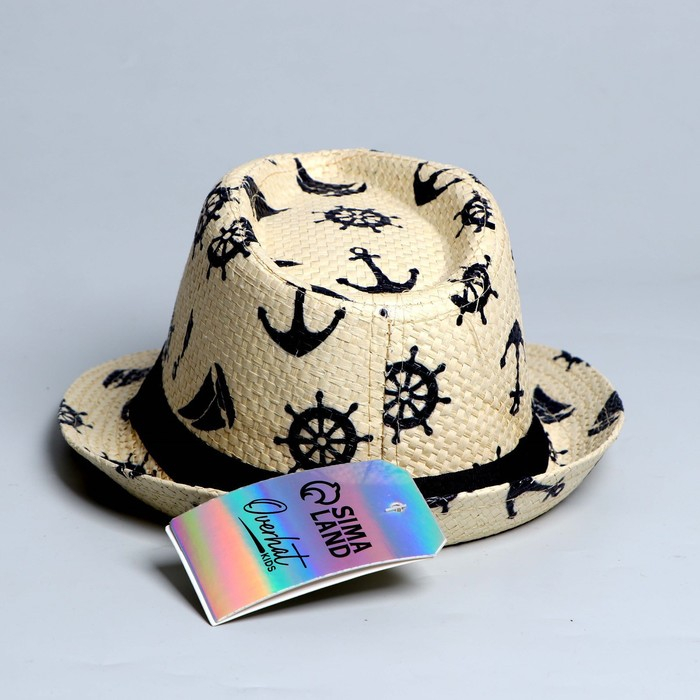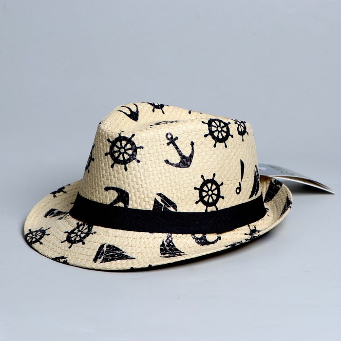 Панама детская соломенная для мальчика «Морская»,р-р 52-54