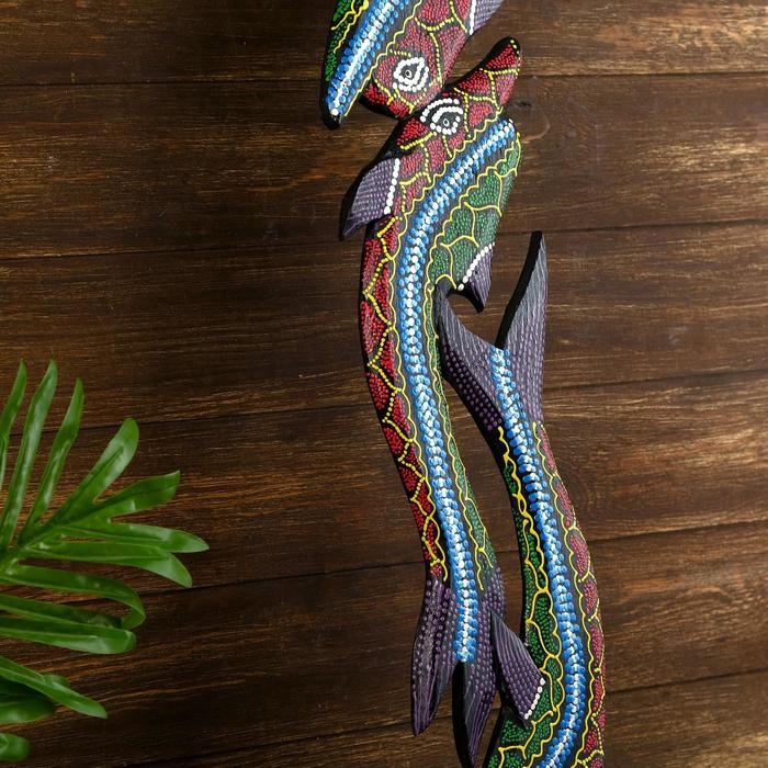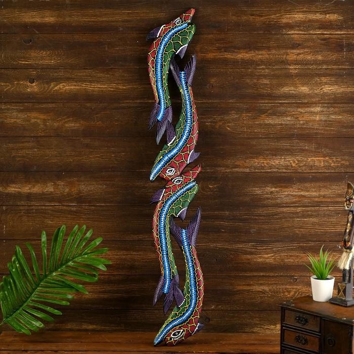 Панно "Дельфины" дерево 100х15х1,5 см МИКС замечательно подойдет в интерьер детской или спальной комнаты. Ведь, дельфин это символ добра, верности и дружелюбия. Этих милых животных можно встретить на острове Бали, который входит в состав Индонезии. Преподнесите такое панно в качестве подарка Вашим родным и близким, и будьте уверены, что этот презент будет оценен по достоинству — все-таки ручная работа!