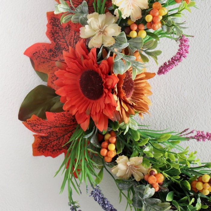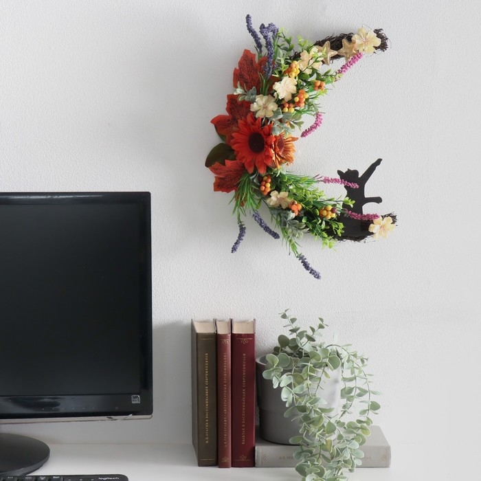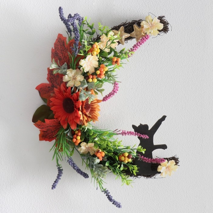 Панно дерево "Кошка на месяце, осенний букет" 25х30 см