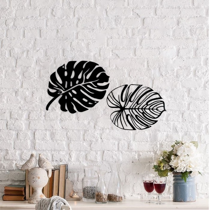 Панно металлическое "Листья" набор (18х13,12х14см)