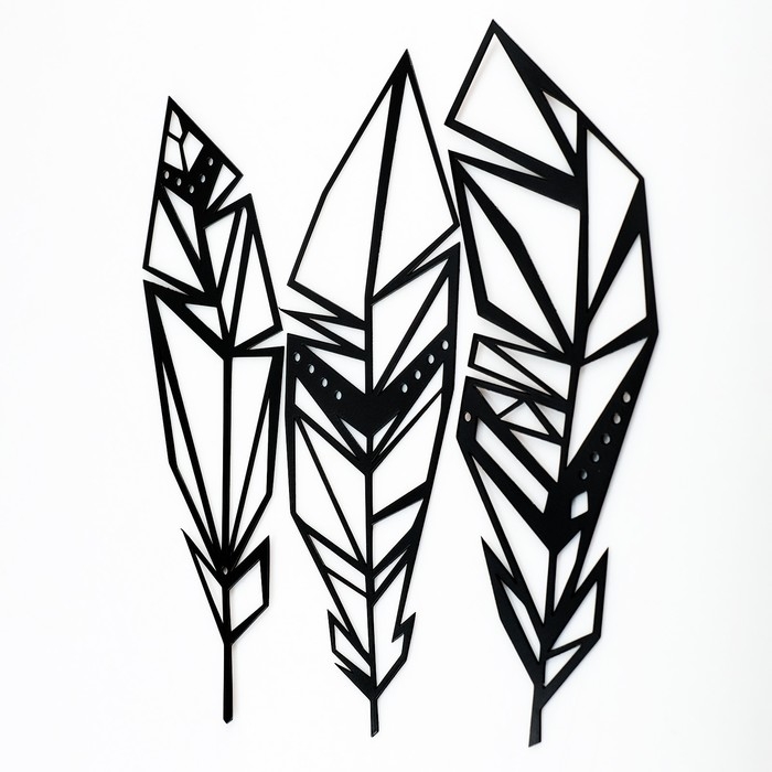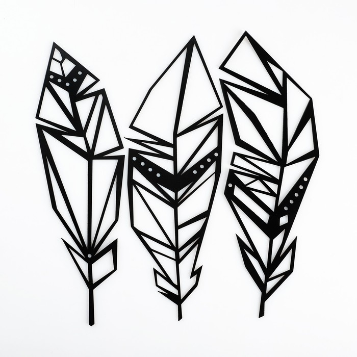Панно металлическое "Перья" черное, набор 3 шт., 25х8 см
