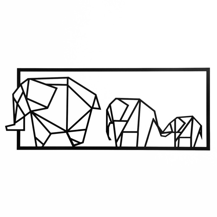 Панно металлическое "Семья слонов" 60х24см