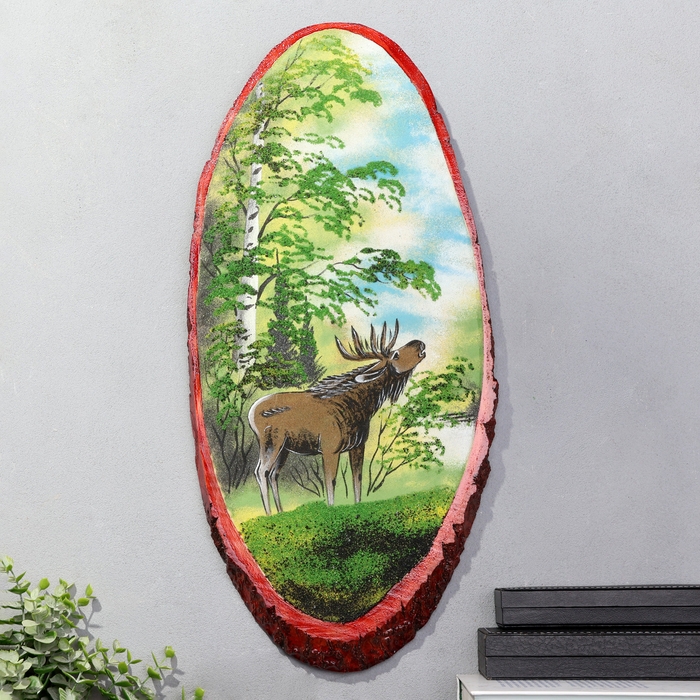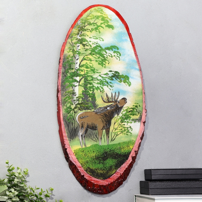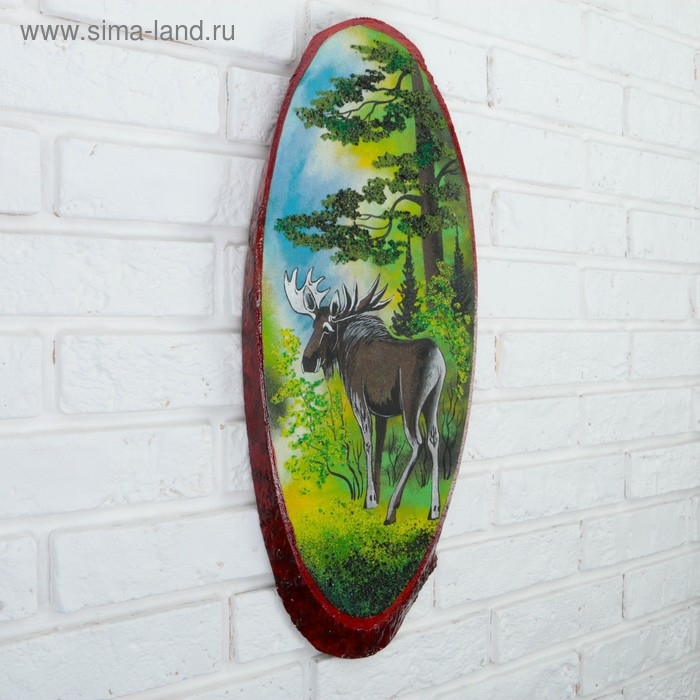 Панно на спиле "Лето.Лось", 52-56 см, каменная крошка, вертикальное