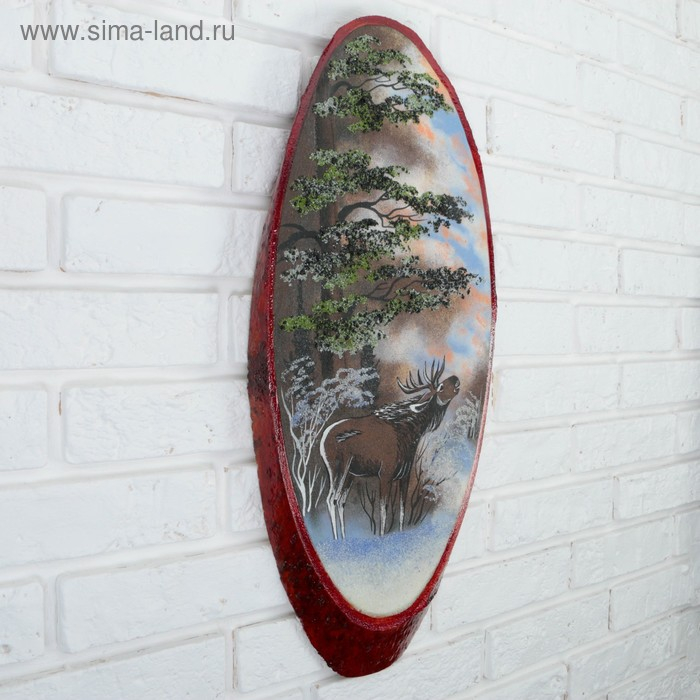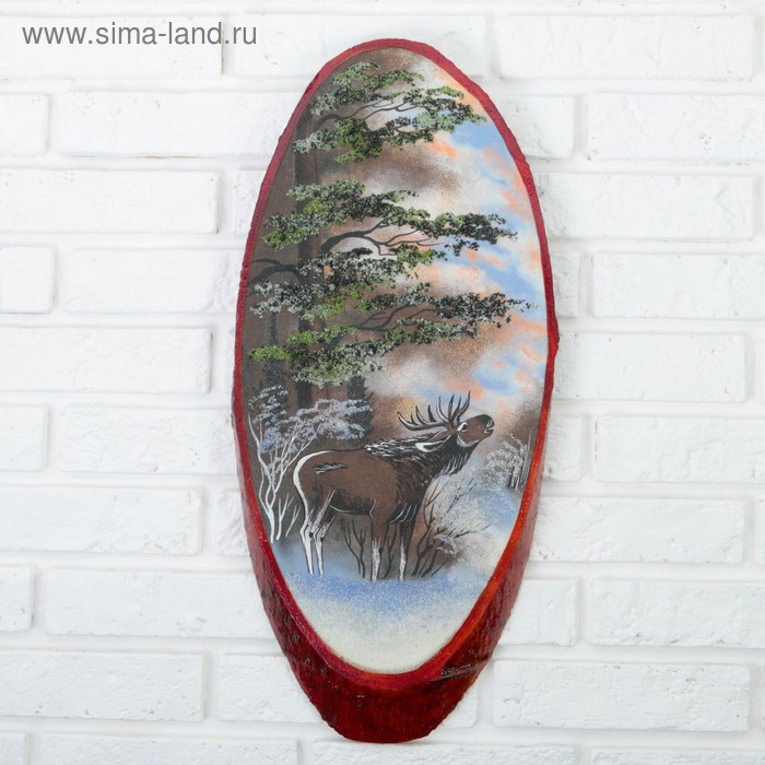 Панно на спиле "Зима.Лось", 52-56 см, каменная крошка, вертикальное