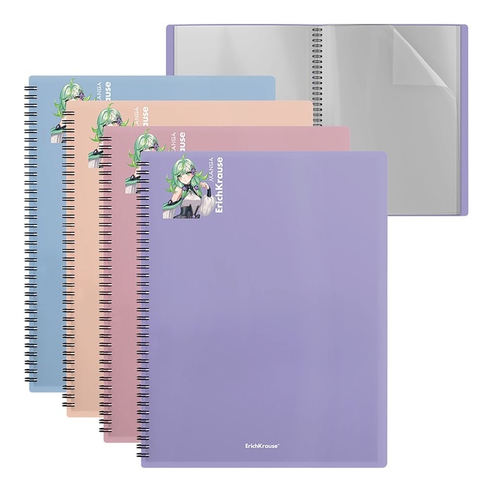 Папка 20 вкладышей на спирали, А4, 600 мкм, ErichKrause "Matt Manga", текстура "песок", микс