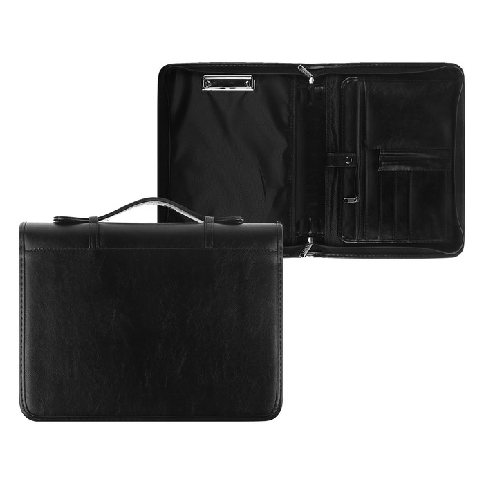 Папка деловая, искусственная кожа, для бумаг, 370 х 275 х 50 мм, с металлическим прижимом, с ручкой, 6Д52 «Люкс», чёрная
