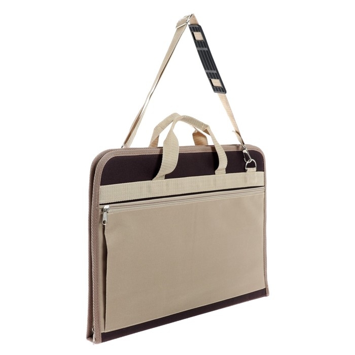 Папка для чертежей и рисунков для художников А3, 450 х 320 х 30 мм, с ручками, каркасная, с карманом, коричневая/бежевая, Estado