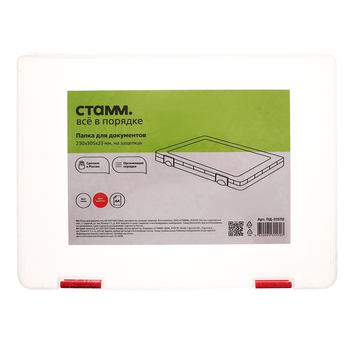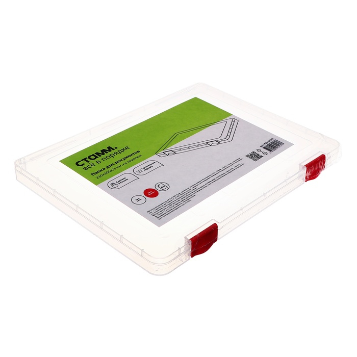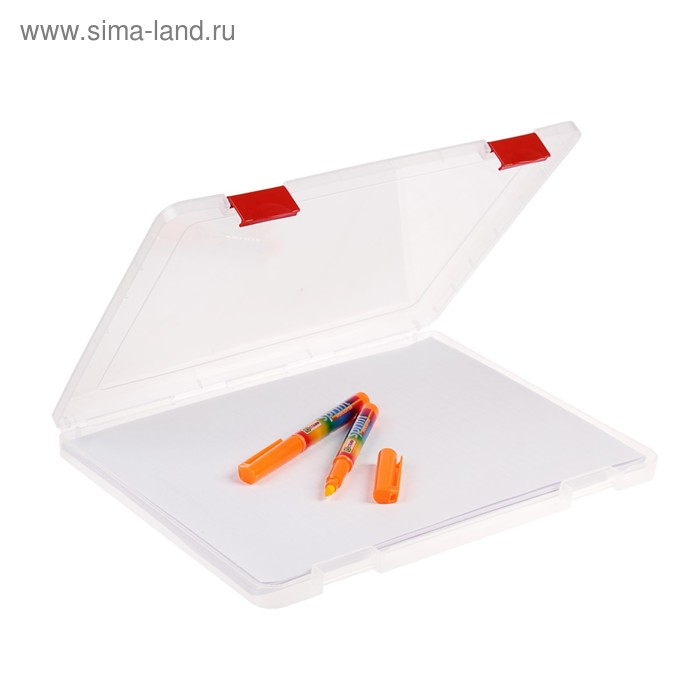 Папка для документов А4, с красными защелками, 230 х 305 х 23 мм, прозрачный корпус