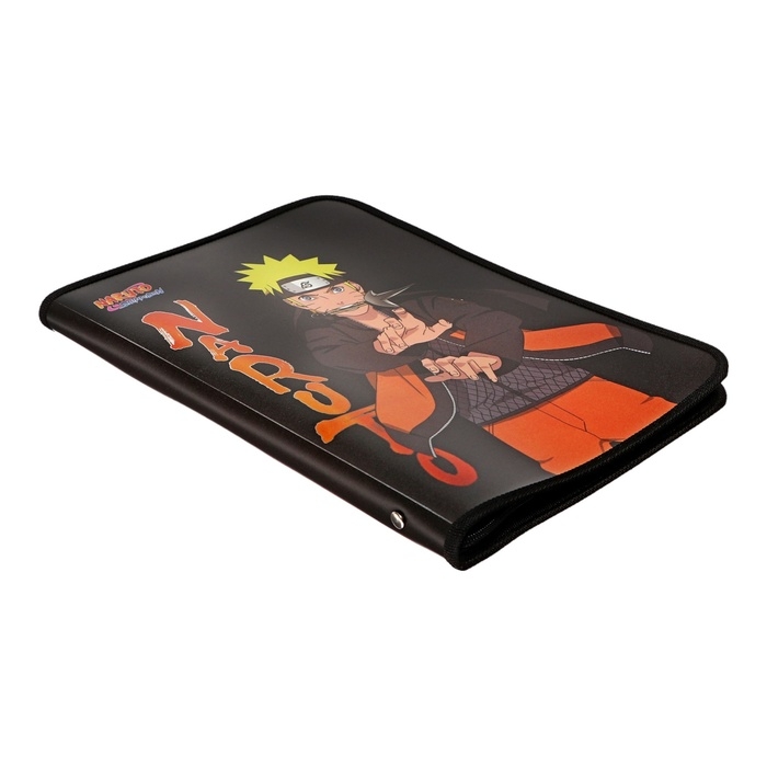 Папка для тетрадей А4, Naruto, универсальная, молния вокруг, пластик, черная