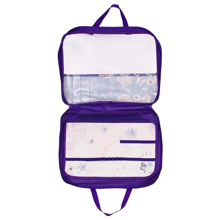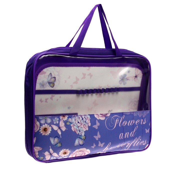 Папка для труда А4, 335 х 260 х 60 мм, с ручками, текстильная, ПВХ, ПТР-111 "Цветы и бабочки"