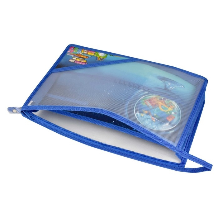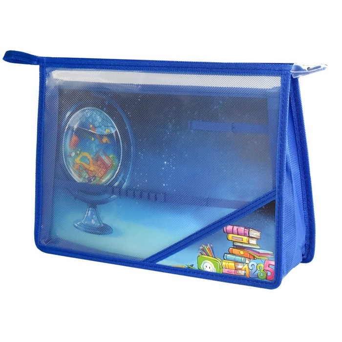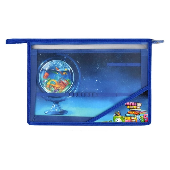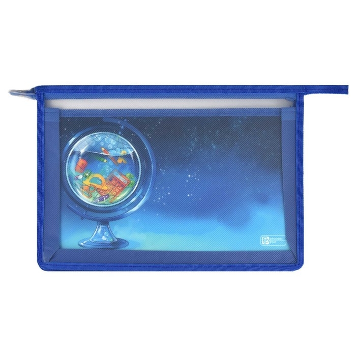 Папка для труда А4, молния сверху, пластиковая, Феникс "Глобус" голубая