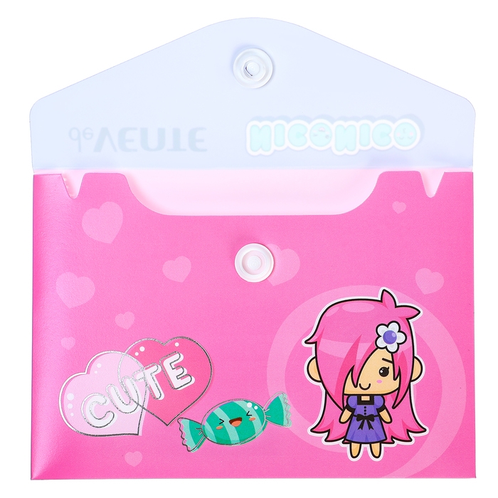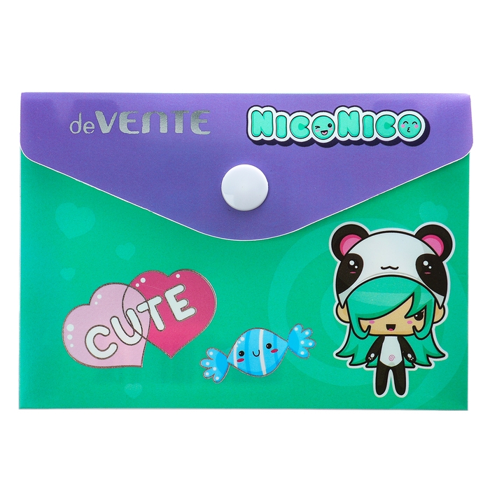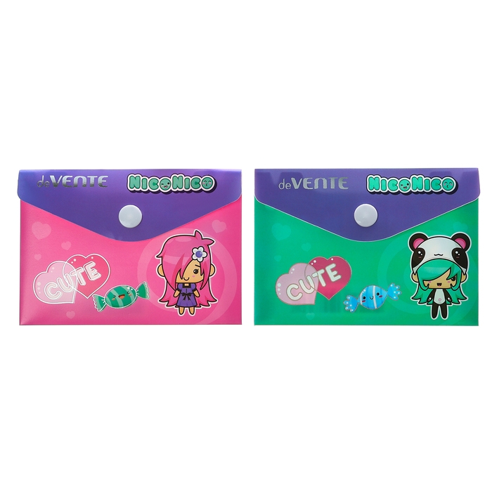 Папка-конверт на кнопке А7, с тиснением фольгой, 105х74 мм, 180мкм, deVENTE Nico, в стиле "Куроми" МИКС
