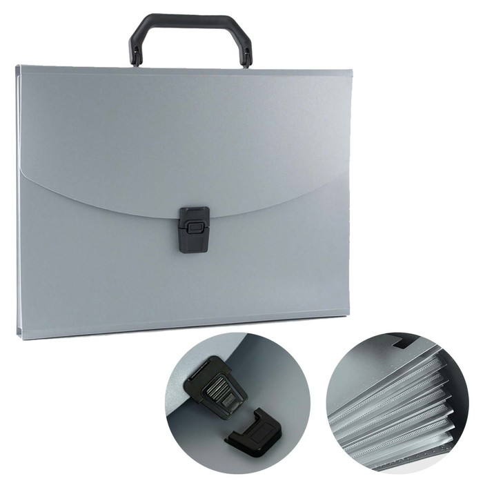 Вместительная папка-портфель предназначена для безопасной транспортировки документов. Она позволит упорядочить бумаги и сохранить их в целости. Формат: А4. Количество отделений: 13. Толщина: 700 мкм. Вмещает до 300 листов. Цвет: серый.