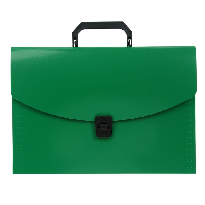 Вместительная папка-портфель предназначена для безопасной транспортировки документов. Она позволит упорядочить бумаги и сохранить их в целости. Формат: А4. Количество отделений: 13. Толщина: 700 мкм. Вмещает до 300 листов. Цвет: зелёный.