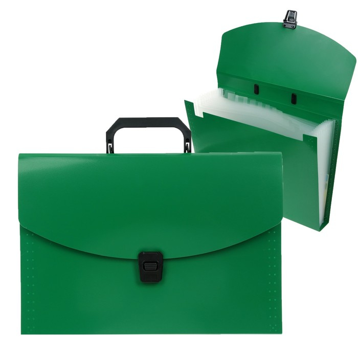 Папка-портфель А4 Calligrata, 13 отделений, 700 мкм, до 300 листов, зелёная