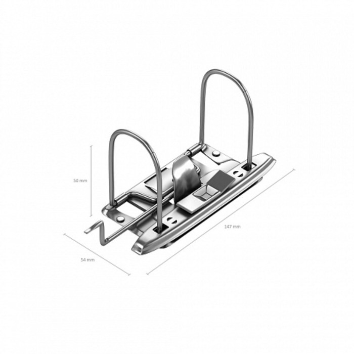 Корешок папки шириной 50 мм оснащён прозрачным пластиковым карманом со сменной этикеткой для маркировки. Для удобства использования на корешке установлено металлическое кольцо для захвата.